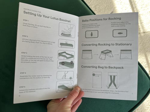 This meant folding out the bassinet body itself, attaching the rocking feature at the bottom of the frame and placing the mattress back in.
