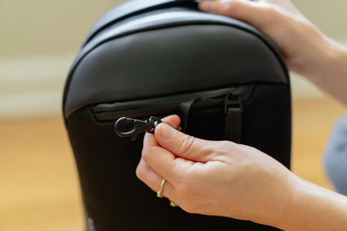 The main compartment zipper on the Apex Sling keeps water out, and keeps dryness in, during any unexpected weather event during travel or biking.