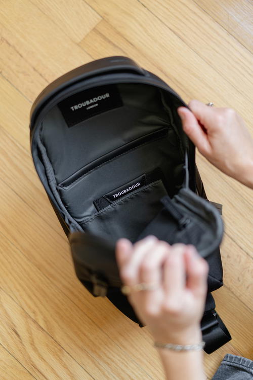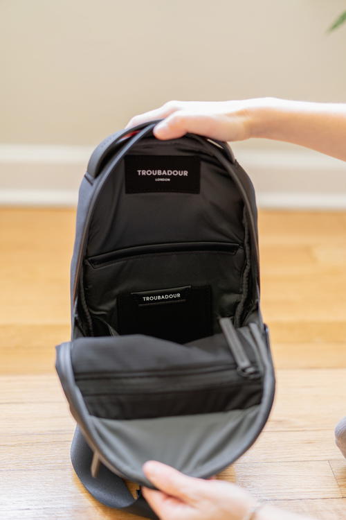 It is easy to confuse the Apex Sling and the Apex Mini, as they are both part of Troubadour’s Apex line, and they’re the smallest (and cutest) of the bunch. To see a full comparison between these two petite backpacks, head to my Troubadour Apex Mini review.