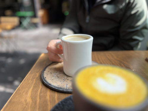 - I tried the curcuma (tumeric) latte when I arrived, after chatting with the super friendly barista.