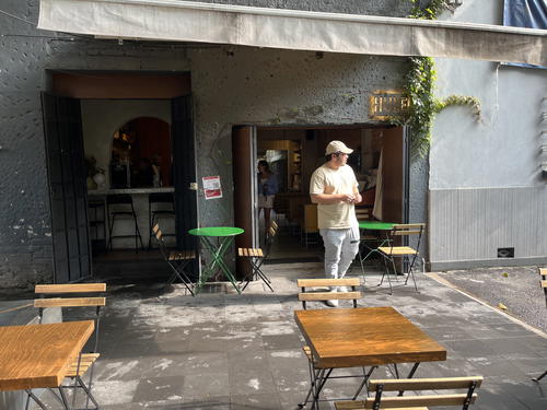 I enjoyed the small details like tiny flowers in tiny vases at the tables, as well as the sun-filled outdoor dining area on a wooden patio in the street. When I go back, I’d love to try a Chemex brew or an espresso tonic and spend some time with a book in this cute Condesa coffee shop.