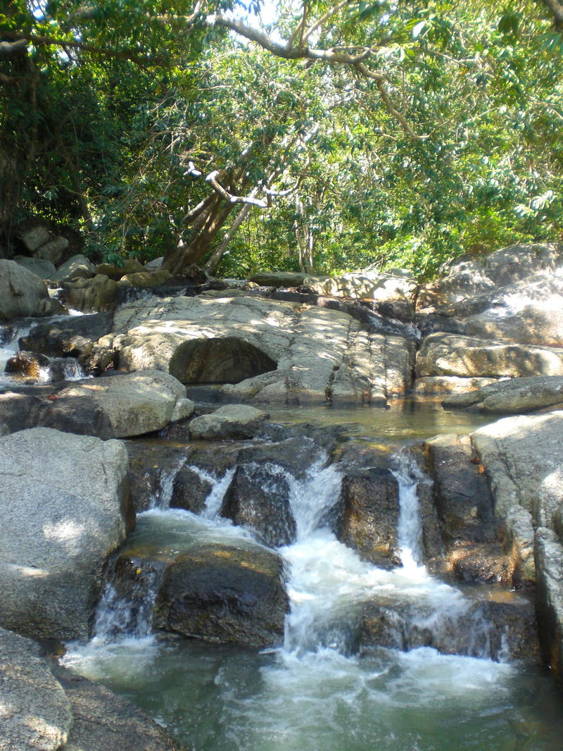 We didn’t stay in the “it” town of Koh Phangan; instead, we took jeeps and pickup trucks at night from the ferry dock to a remote village that had a beach dotted with 3 guesthouses and 1 restaurant. I just came across a photo of the nearby waterfall in my old photos, Googled it, and found that the beach was named Haad Sadet Beach หาดธารเสด็จ.