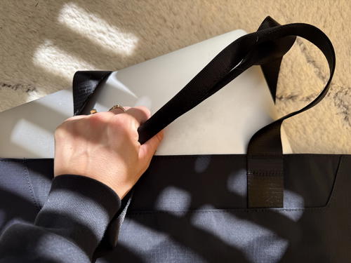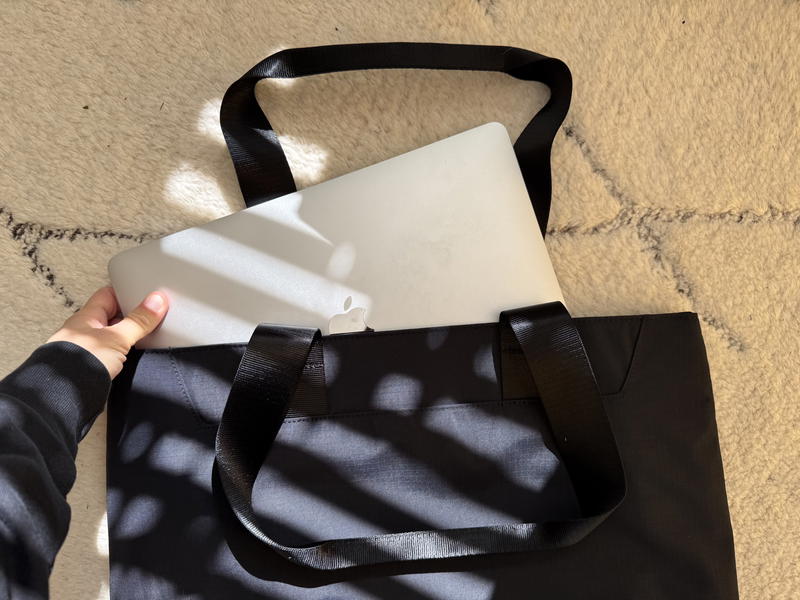 The first thing I noticed is that it looks clean and modern, without the floppy look some laptop totes can have. It works as a general-purpose carry-all for errands or travel, and it also feels dialed for tech carry thanks to the internal layout.