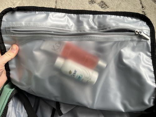 What I mean by that is that if you intend for the Blast Backpack to be your entire backpack for a weekend away, then you can ditch a toiletries pouch completely and save space, if you keep your shampoo and toothbrush in this clear pocket. That’s a space-saver for sure.