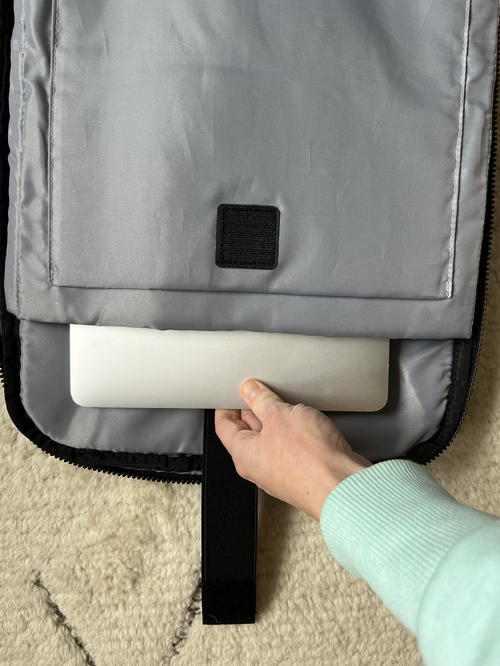 Limited tech organization – No dedicated tech organizer panel means your chargers, cables, and accessories slide to the bottom of the laptop compartment, making them harder to access. Use a tech case to help solve this!