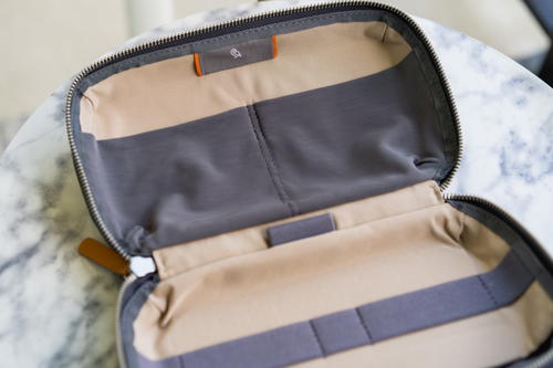 The Bellroy Tech Kit felt classy and upscale when I first laid my hands on it. It has a clamshell-opening style, and zips 85% around so that I can lay it flat on a table and see everything.