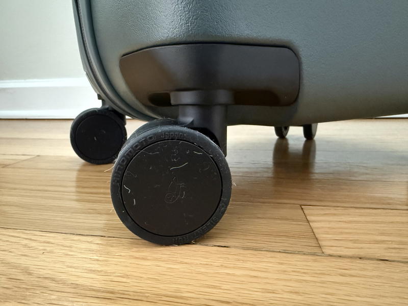 The 360-degree spinner HINOMOTO Lisof wheels roll smoothly on anything, even if it’s carpet or bad sidewalks in NYC. Inside in the airport, they are nearly silent, so there are no janky wheel sounds.