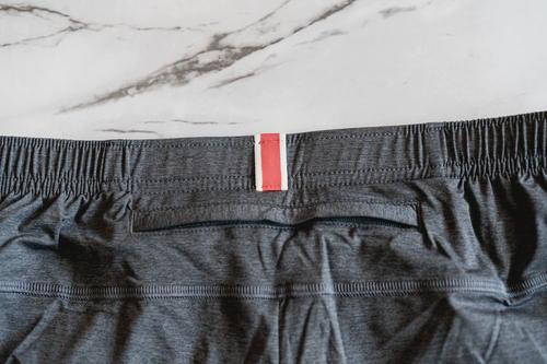 I tried them in Heather Gray in size M after reviewing the size chart. A few benefits of their “Global Recycle Standard polyester” blend is that they dry fast, have a four-way stretch and are moisture-wicking. These are all good qualities that make them contenders for having in my bag on a travel day. I like the secure back pocket, and the hidden phone pocket at the front.