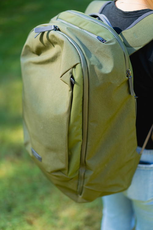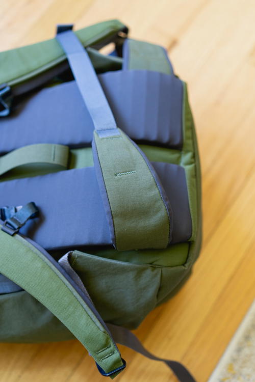 The Global Travel Bag in 30L has “three-way” backpack straps-duffel handle-shoulder strap functionality. I haven’t used it as a duffel, and I’ve only used it as a backpack. My favorite part about it is that the materials feel lightweight and strong, to reflect the price tag.