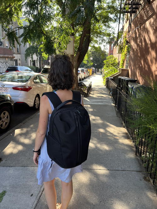 The Away Everywhere Zip Backpack has been my personal item on a flight during travel. I’ve also used it as my go-to daytime backpack while on vacation.