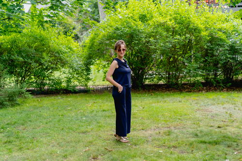 A bit about Anatomie’s luxury travel pants: they’re wrinkle-resistant with a slimming fit, designed to hug the body’s curves, and have DEEP front pockets. About the fit: they run small! See more in the customer reviews on the product page from real women who talk about their experience choosing the right size. (And a little update here: you can get a free packing cube by purchasing 3+ items from their site at the link below)