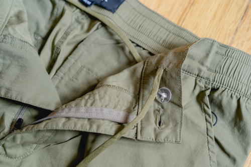 Some shortfalls of the Mugsy Travelers Pants to mention: if I had to pick a shortfall it’s that when they’re not draw-corded into joggers for doing athletic activities, they’re a little on the baggy side.
