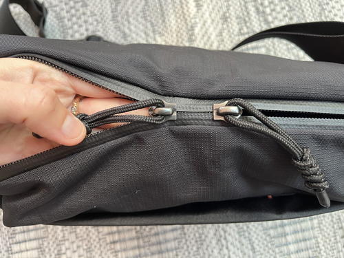 The zippers end at either end of the sling’s main cavity, and they meet in the middle, meaning you can open them both at one time, or open one at a time from the side you prefer. It’s a unique design and I talk about it a dab more at my Bellroy brand review, with additional photos.