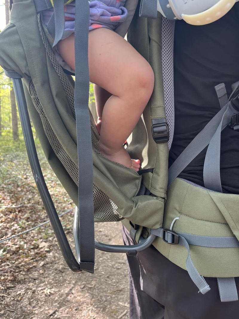 Did our daughter stay secure? We actually got off to a rocky start. A few minutes into the hike, Becca saw that her legs were uneven, and she had to be shifted. Take this into account: there doesn’t seem to be much of a way to keep the child from slipping in the seat.