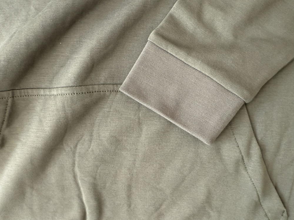 This hoodie hits true to size: fitted, hitting a good spot on the hips and reasonably-sized shoulders and armpits. The three-piece hood comfortably contours the shape of your head without feeling restrictive, and the kangaroo pocket keeps your hands toasty during those chilly morning hikes.