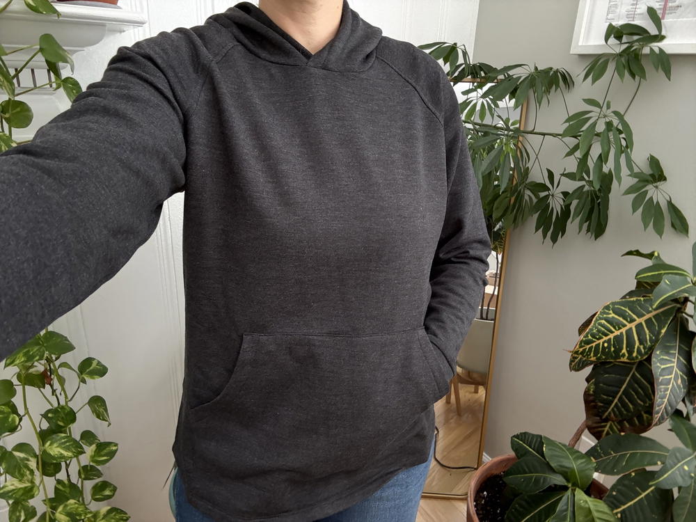 This hoodie strikes the perfect balance between warmth and packability. It’s lightweight enough to throw in your bag “just in case,” but cozy enough to actually want to wear. The bamboo and polyester blend (67% viscose from bamboo, 29% polyester, 4% spandex) feels soft and moves with you.
