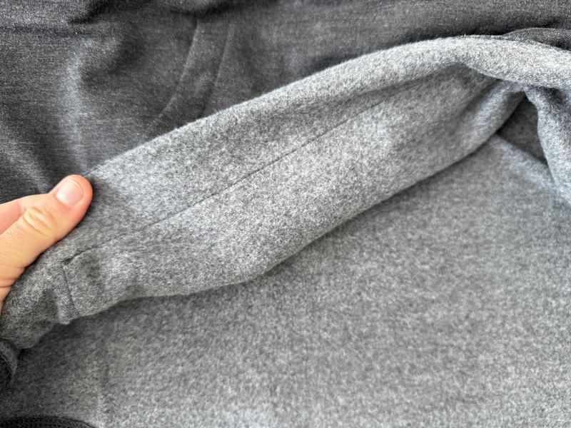 What makes this hoodie special for travel is how thin and lightweight it is. The micro-fleece interior is super cozy and soft, but it’s not thick or suffocating like other sweatshirts I own. Because it’s not heavy or bulky, it packs down small and compresses easily into a smaller packing cube.