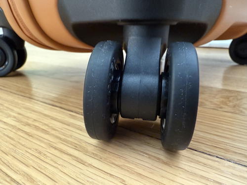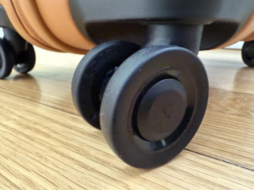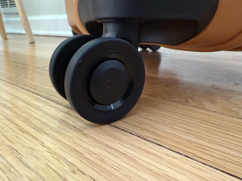 It has some of the quietest wheels I’ve ever seen. They don’t bounce around. They’re smooth and have 360-degree roll capability. The first time I used them on the airport floor, I felt like I was skating on ice with my Cubo.