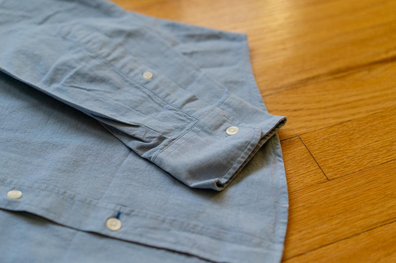 Because it’s chambray rather than a formal dress shirt, it’s designed to be worn more casually - top button undone, sleeves rolled up. This makes it perfect for the kind of business casual environments you encounter while traveling, where you want to look put-together but not overly formal.