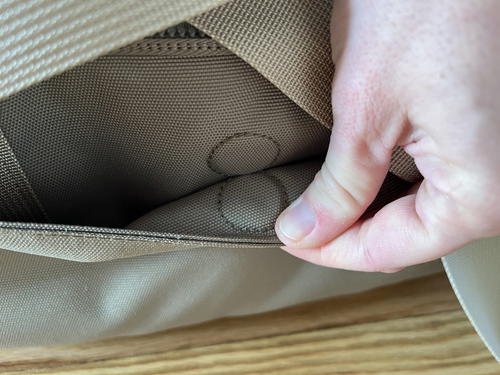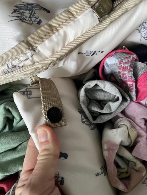 I love a good magnetic-closure pocket on a travel bag. I think they’re the latest and greatest way to have neat closure, and they’re quite satisfying as well. I liked finding this as I was packing the Hideaway Duffel for my toddler.