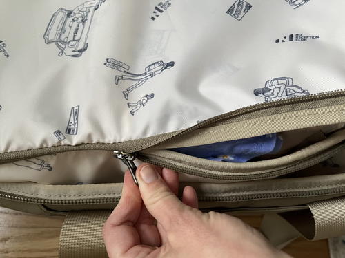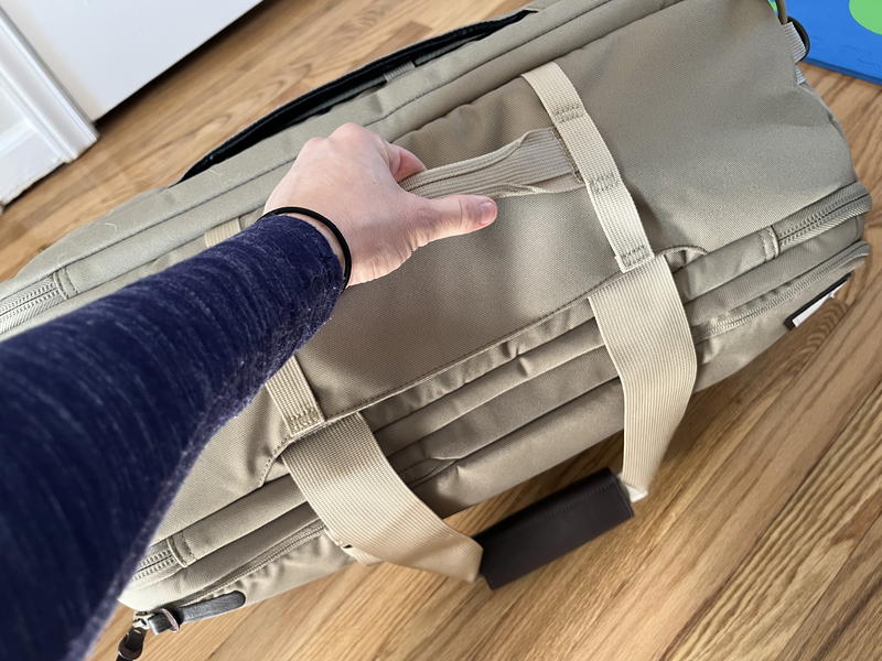 In order of the features I used, I’ll detail what’s important for you to know as you’re considering getting the Hideaway Carry-On duffel bag for your child.