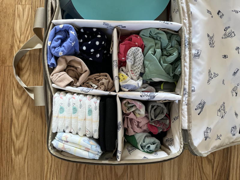 But I think that changed, once I opened the Hideaway Carry-on Duffel Bag for travel. It’s a sturdy duffel bag, and as you explore it, there are more highlights at every turn. It’s made for expertly organizing your baby, toddler or child’s things while you’re in transit, and that helps a lot, given all the chaos of family travel.