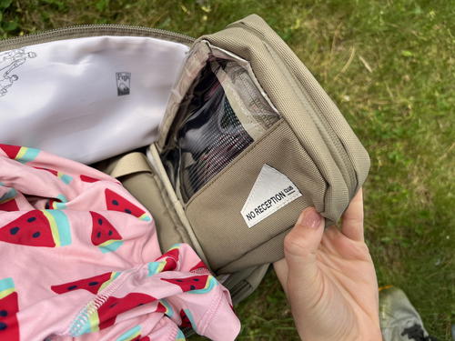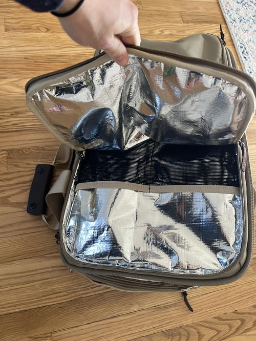 Wow, cool (literally). This insulated compartment is just like the insulated mini cooler that came with our Getaway Bag from No Reception Club.