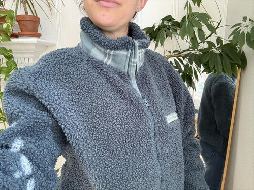 The Sherpa Fleece keeps me warm with ONLY a tank top underneath when it’s 49 degrees outside (and this is exactly when and how I wore it one of the first times). I kid you not, this thing is that warm.