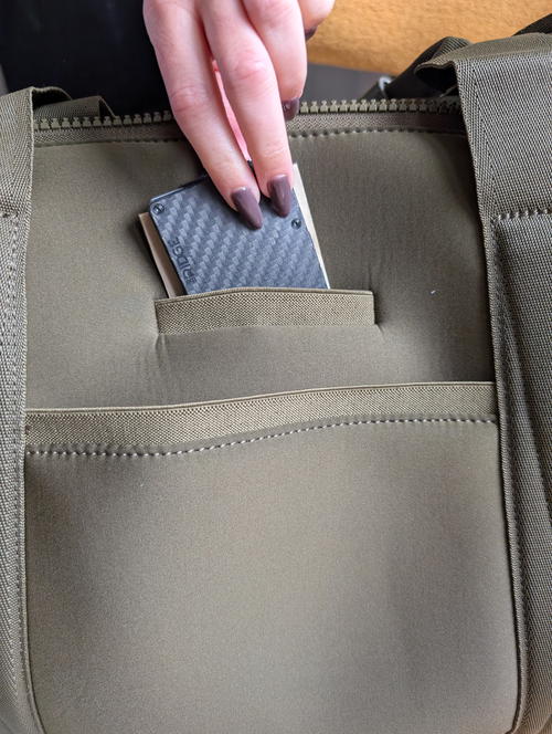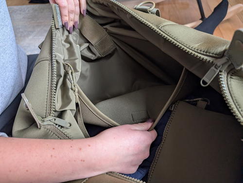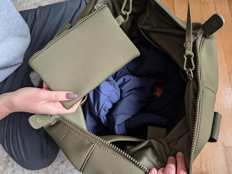 There it is, the detachable zipper “pouch” that Quince has made characteristic of various bags in their Neoprene travel bag line. I touched on how trip-savvy this little feature is in my Quince neoprene backpack review as well.