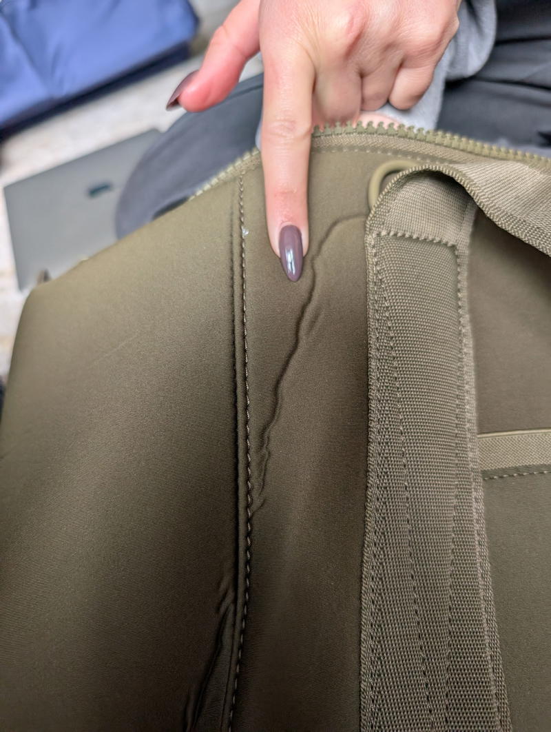 I think that anyone buying a neoprene product should know about how neoprene can crease, either in storage or while the product is being shipped to you and smushed a little in the box. I noticed that throughout the shipping, and then some storing, of my Quince Neoprene Duffel, that there’s kind of a vein-like crease in the fabric and I’m not sure if it’s going to come out.
