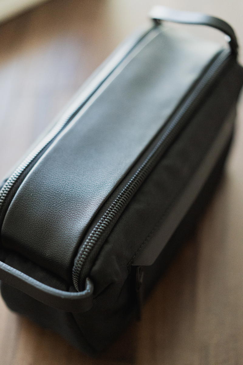 Troubadour is a B-Corp brand, which means sustainability is an integral factor of how they operate and manufacture. In the Rig Case 2.0, the materials are recycled polyester and vegan leather, and the exterior is waterproof.