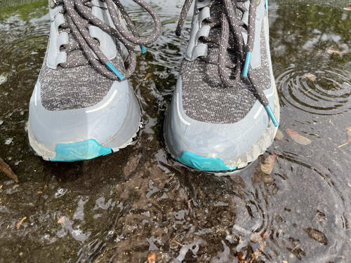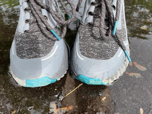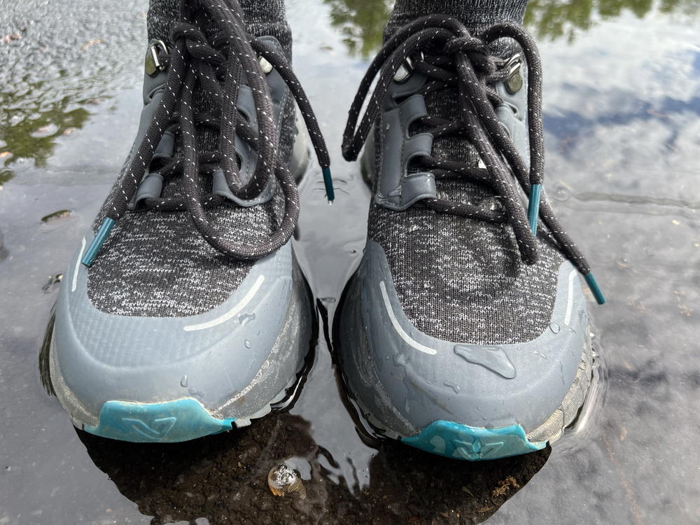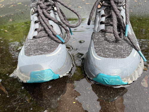 They grew on me, though (not literally). After wearing them on a regular hike (no rain that day), I thought, “Okay, I can like these.” And the real test came when rain did come, and I walked straight through a puddle in them.