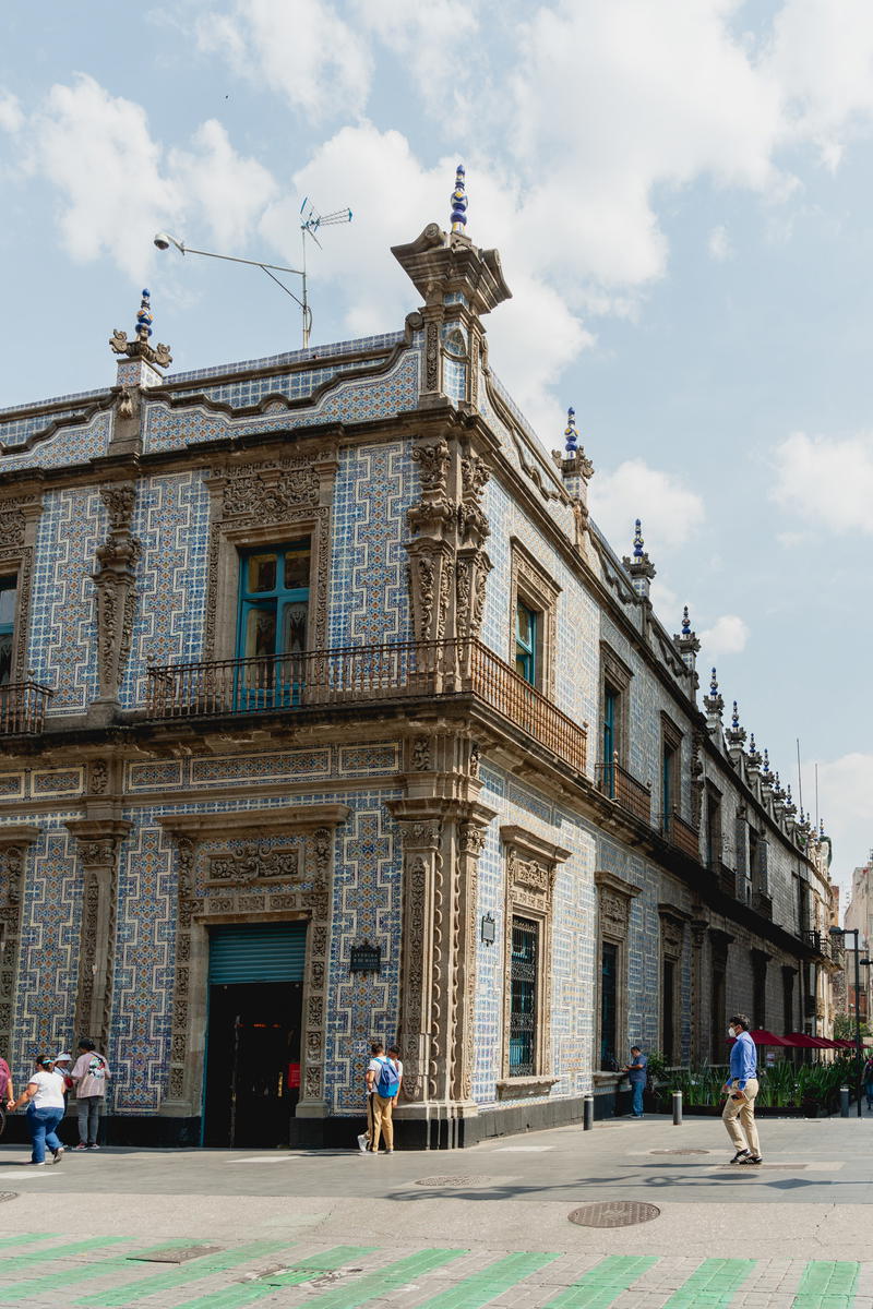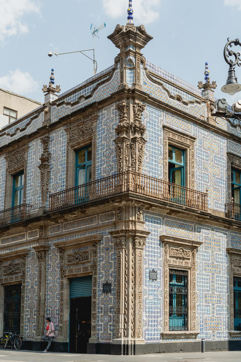 The first time I went to Mexico City, I hadn’t known about the building with the Portuguese-style blue azulejo tiles. When I went back, I was sure to visit and get close up for these photos.
