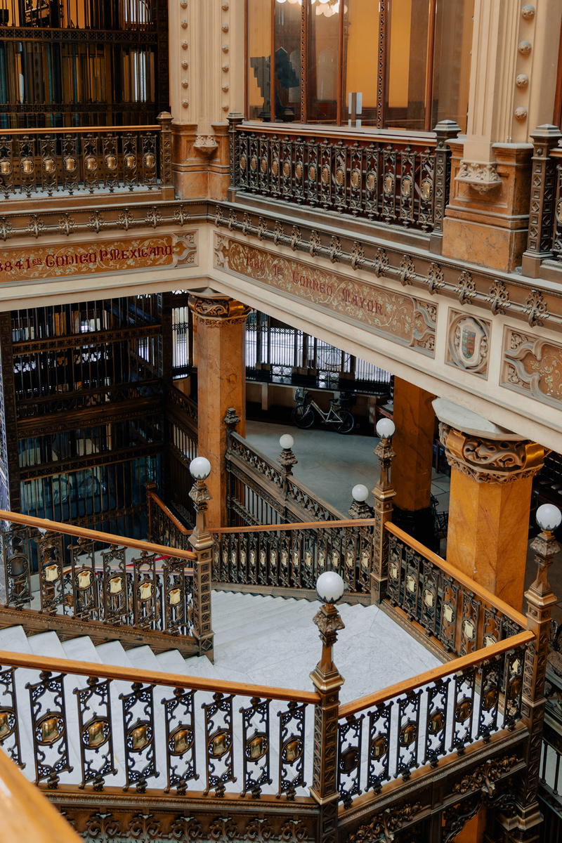 As we cross just a few streets, we’re heading to the Palacio de Correos de México (Postal Palace of Mexico City). And it’s really a palace! It’s also one of the places I recommend in the best photo spots in Mexico City guide.