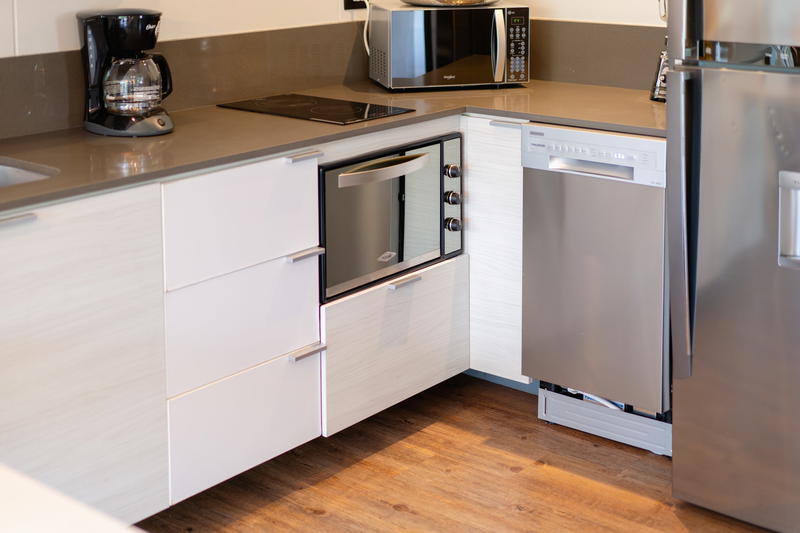 Load the contents of bottom cabinets onto the higher surfaces and find “resting places” for them during your stay.