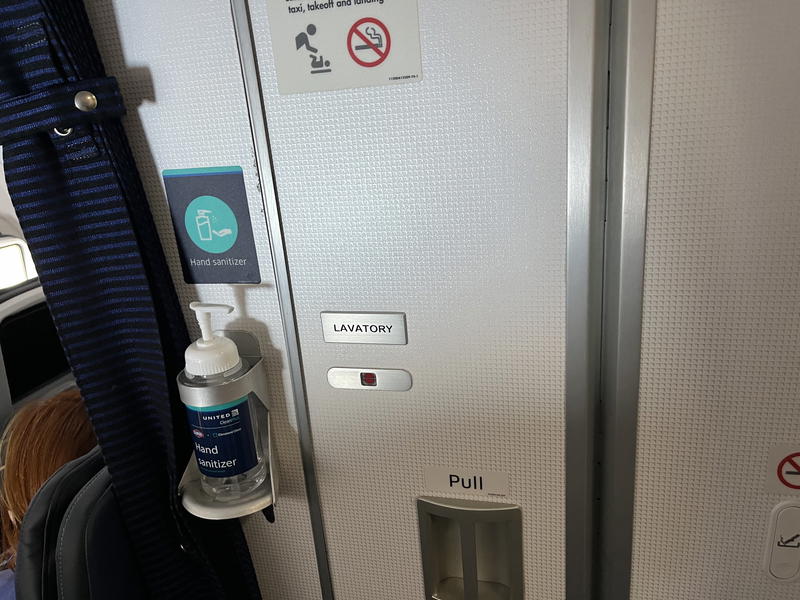 What I do is use some quick travel-sized hand sanitizer (either from my fanny pack, or the one that the plane provides), bring our daughter back to Dan, at our seats, and head back to do a proper hand wash.
